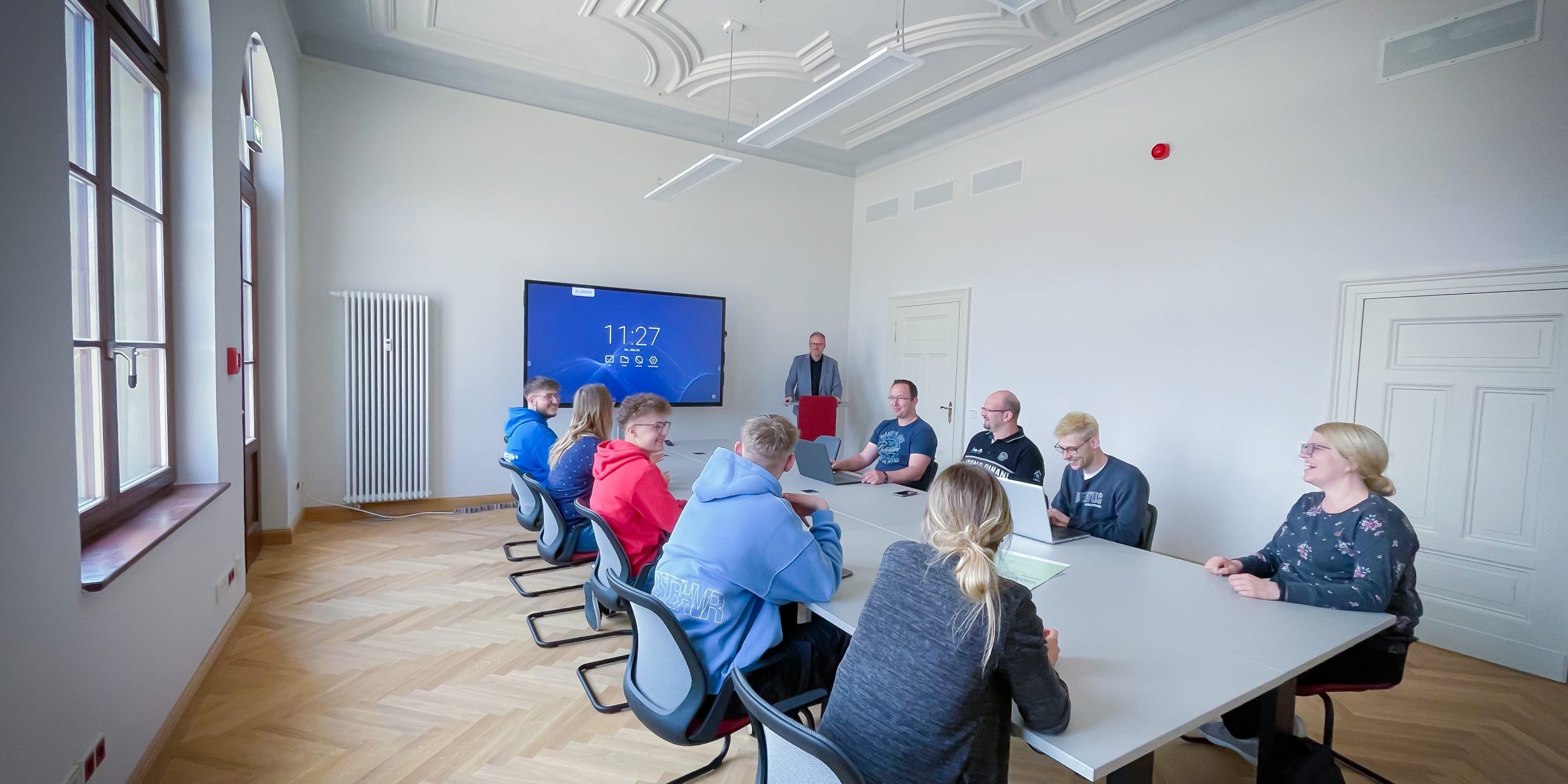 | Tagung | kostenfreies WLAN Flipchart / Pinnwand / Whiteboard Moderationskoffer Rednerpult Konferenzmonitor 85″ Pointer |